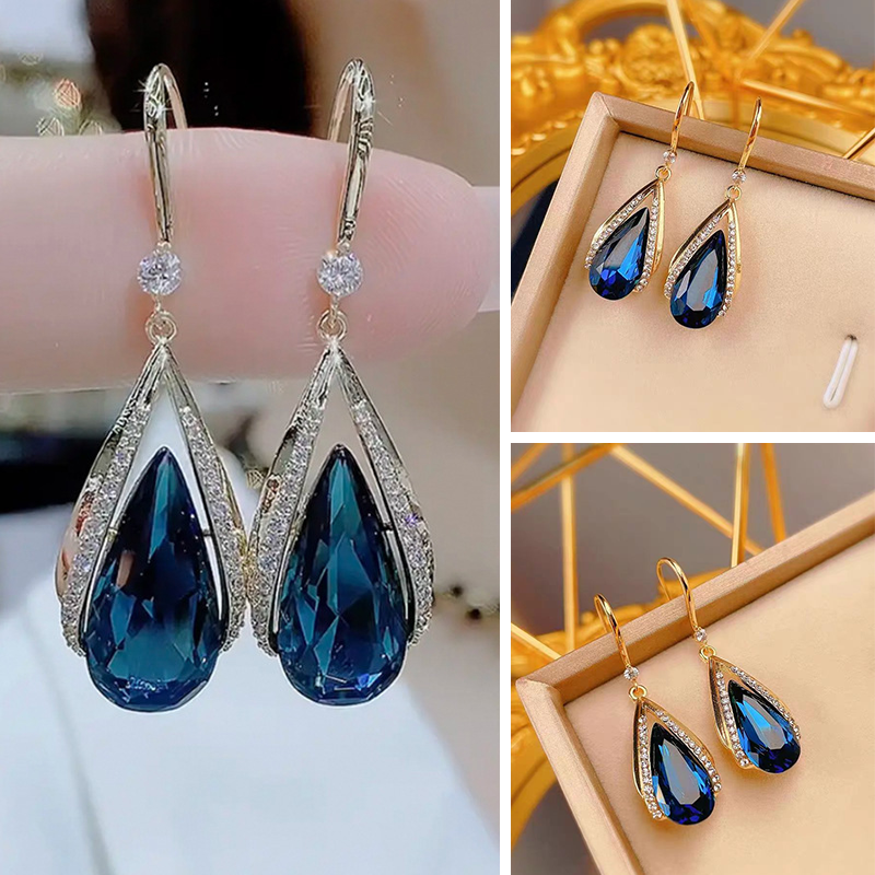TIMELESS BLUE DROP DESIGN: These stunning earrings feature a classic teardrop silhouette in a mesmerizing blue hue, perfect for adding a touch of sophistication to any outfit.