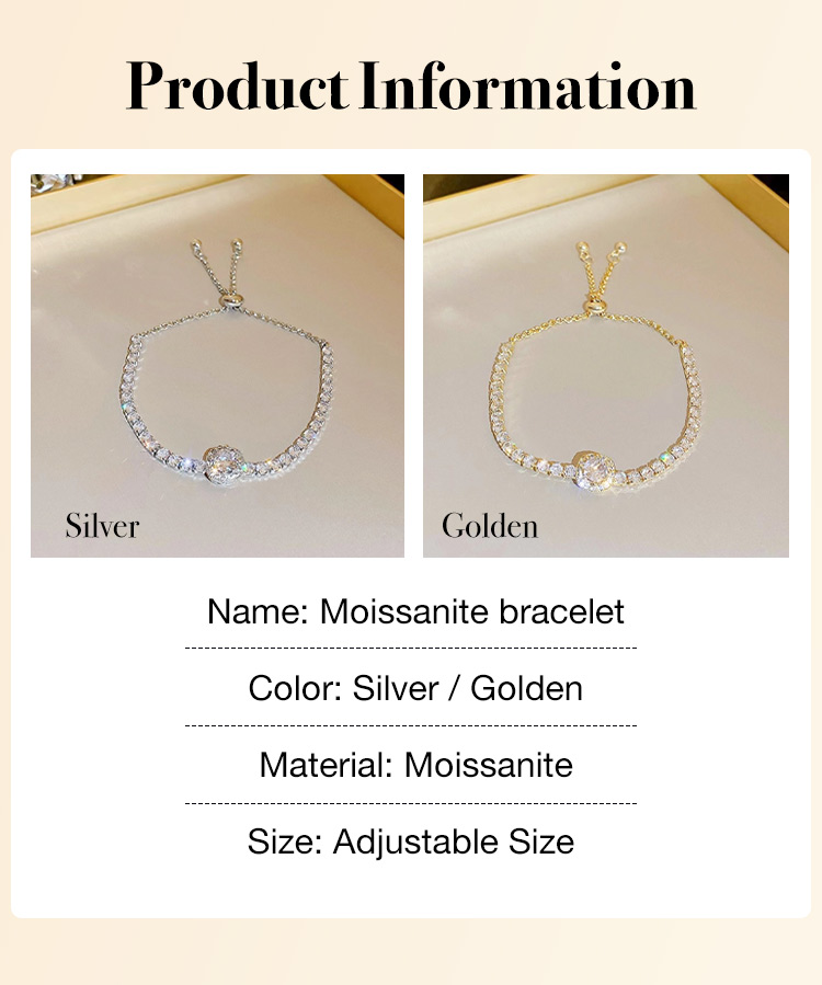 Moissanite Bracelet - Comes in a beautiful gift box - Adjustable length
